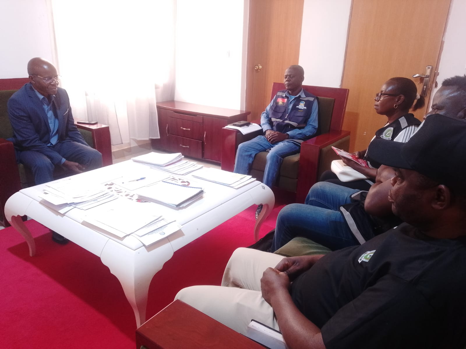 Visita de cortesia dos presidentes dos conselhos províncias Benguela e Cunene a Sede Nacional, após participação do congresso da CPLP. Foram brindados com certificado de reconhecimento pela dedicação e resiliência; Pela vice-presidente da OBCLA